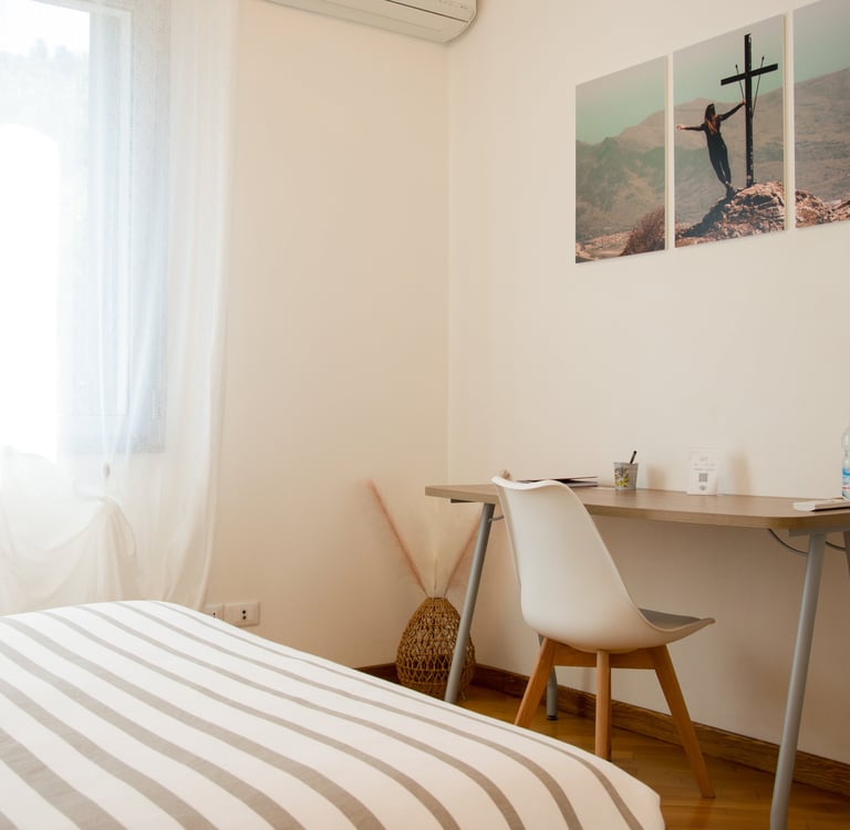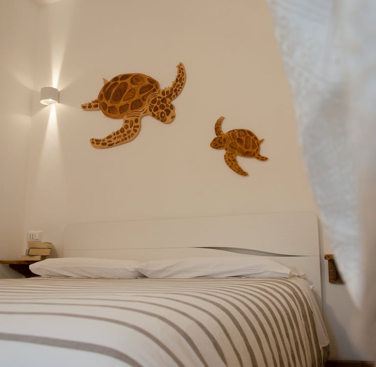 The Gallinara room offers a cozy standard double bed and a private bathroom for your exclusive use, located just outside the room (through the adjacent door).